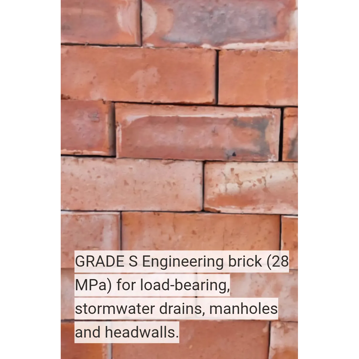 Clay bricks with a pleasing terracotta colour, suitable for general building work below damp-proof course or under damp conditions or below ground level where strength and durability rather than aesthetics is important.